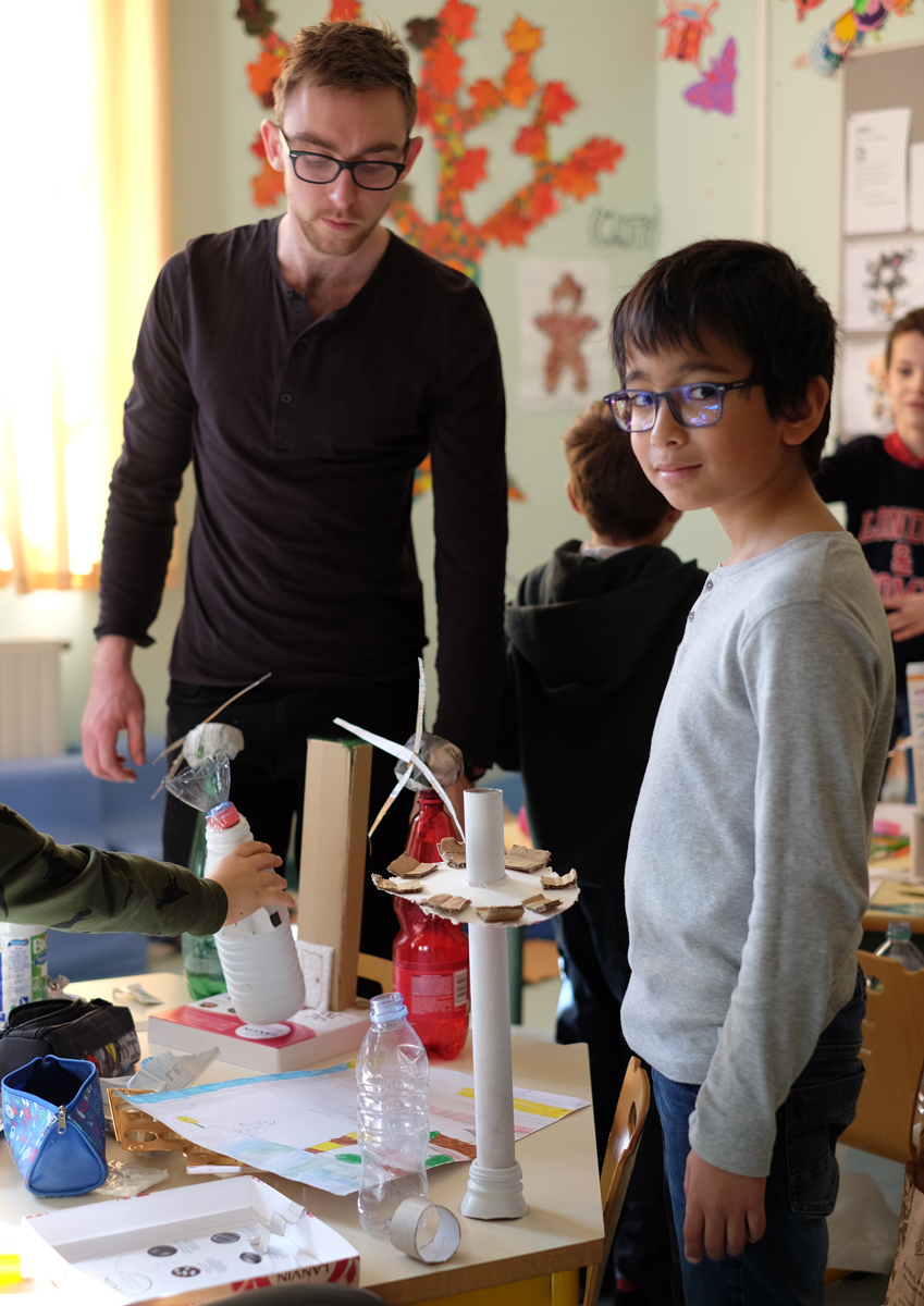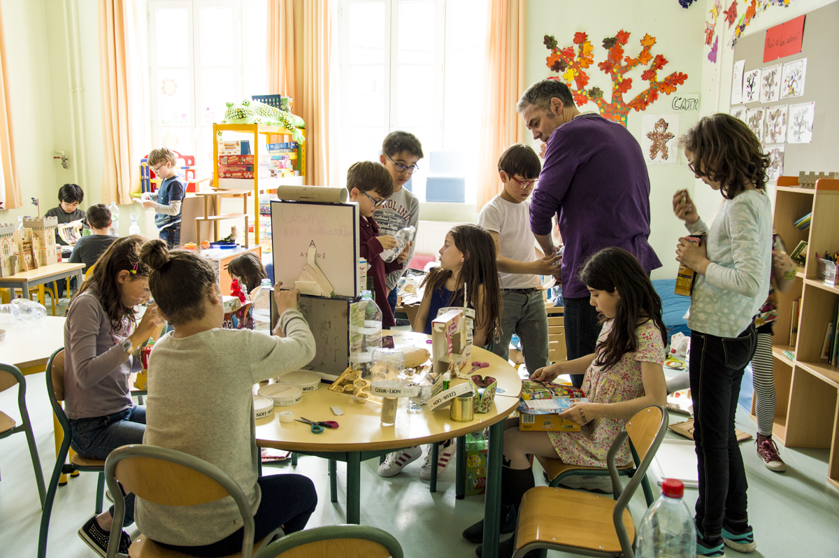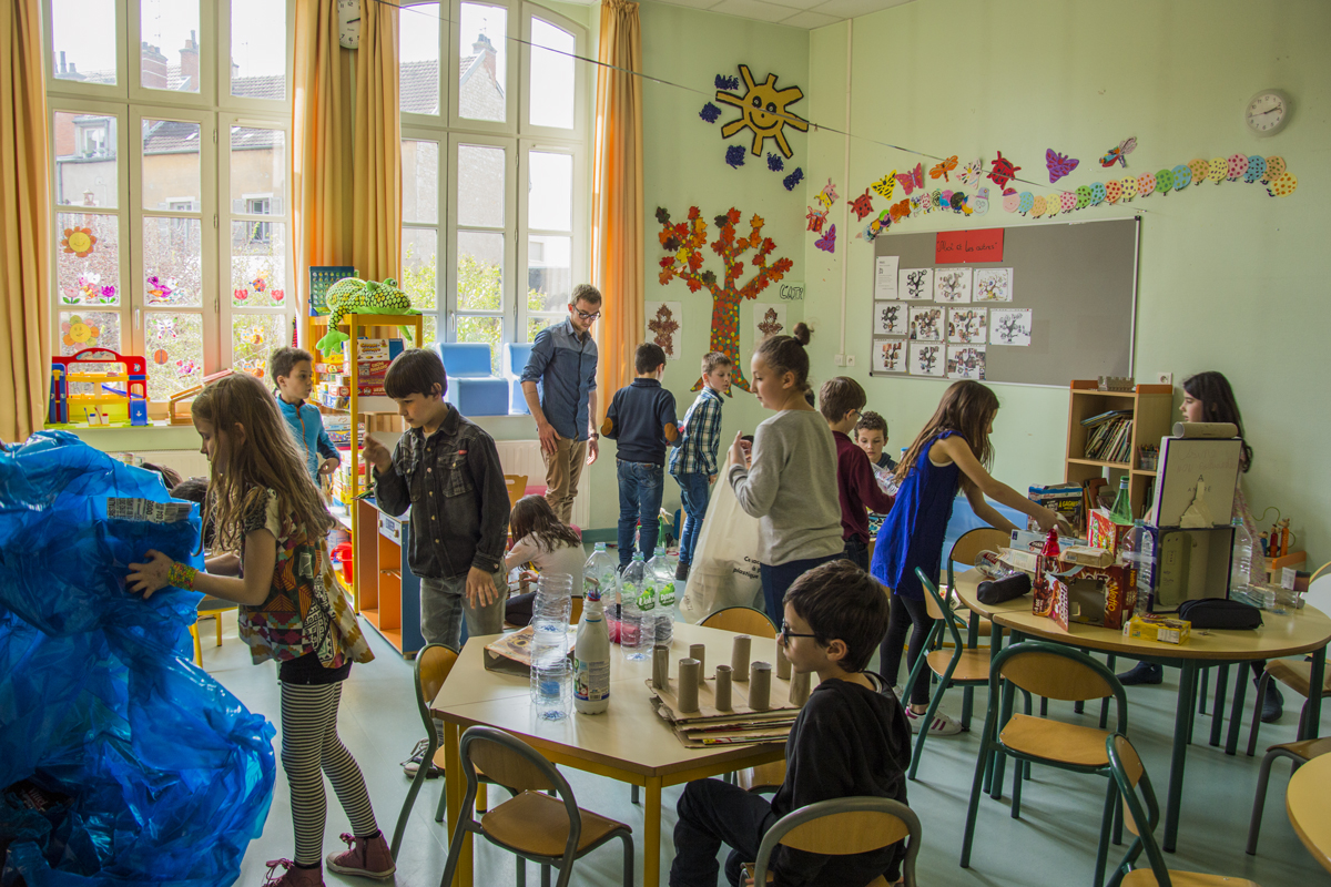Je travaille régulièrement avec des enfants. Ils sont une grande source d'inspiration. Ils regardent le monde différement. Je voulais échanger avec des enfants à propos de sujets qui me préoccupent comme : la consommation, l'écologie, la citoyenneté. Je suis aller à la rencontre de deux instituteurs, en école élémentaire et nous avons organisé des rencontres régulières pendant 6 mois avec deux classes de CM1 et CM2.