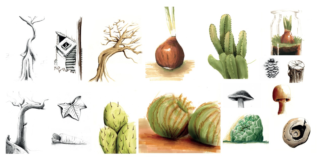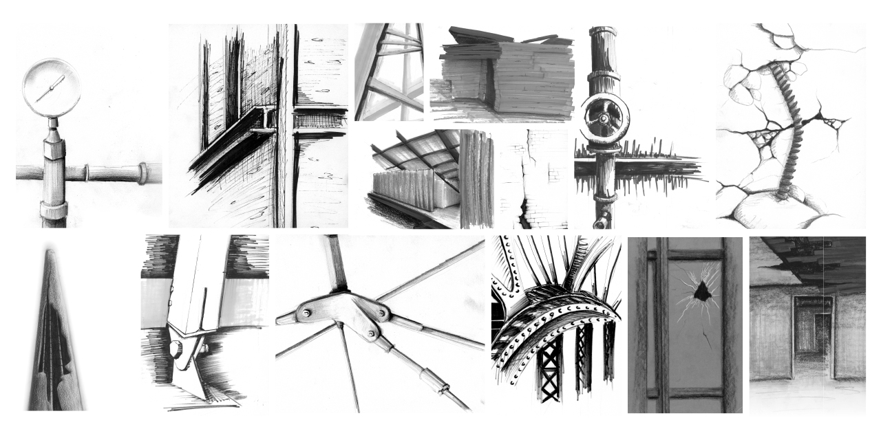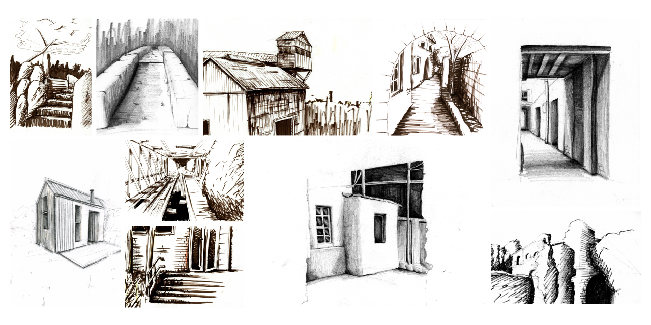 Un pannel de croquis d'observations effectués pendant ma formation.